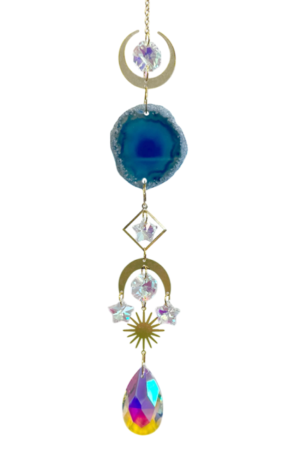 Ce joli mobile contient une véritable Agate de 3x5cm teintée.